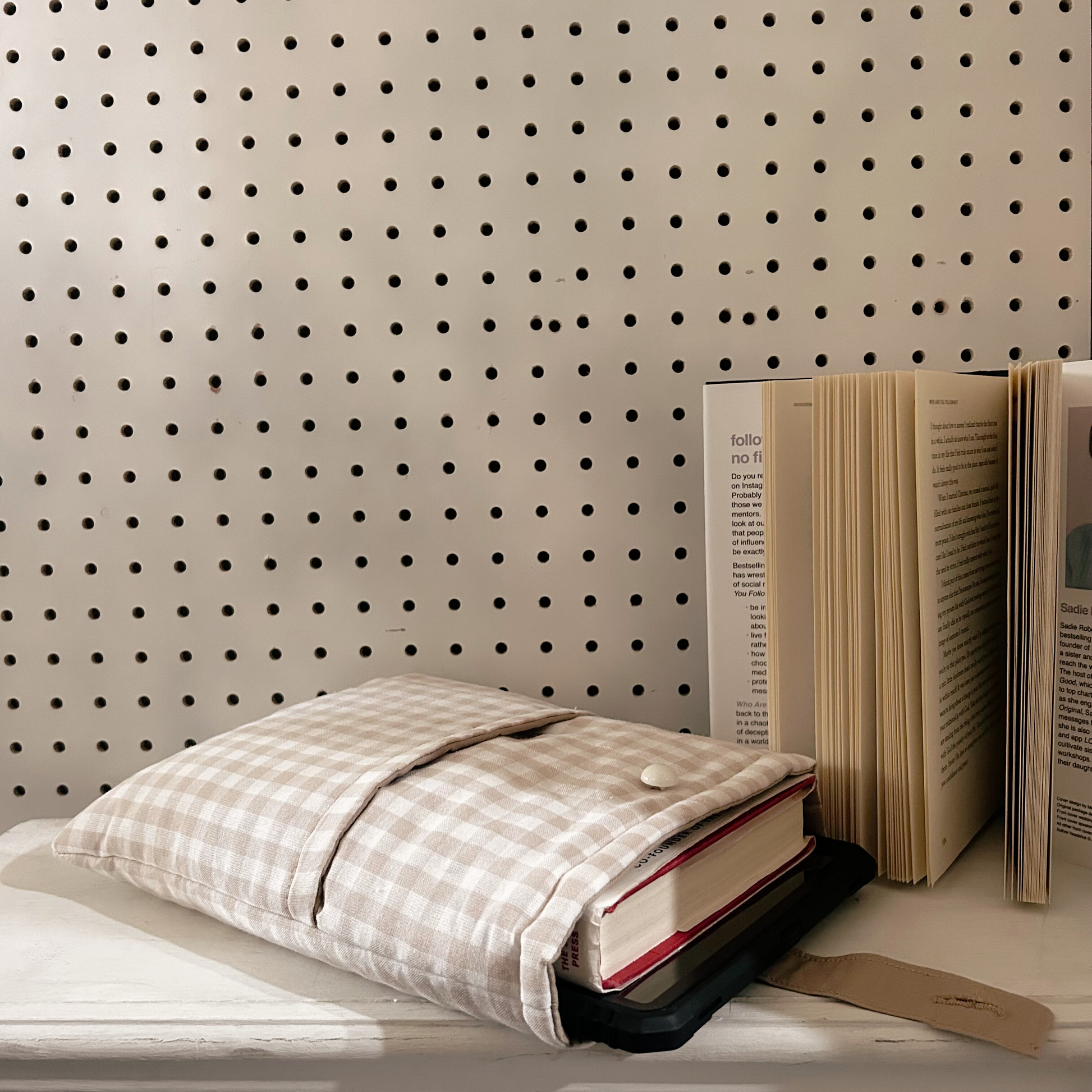 Holds two hardcovers or one book plus a tablet. Journals and notebooks fit too. giving you flexible storage.